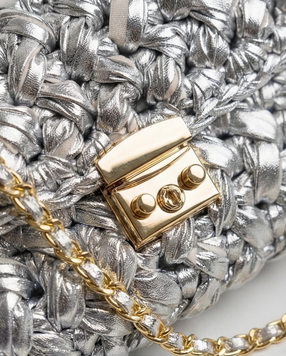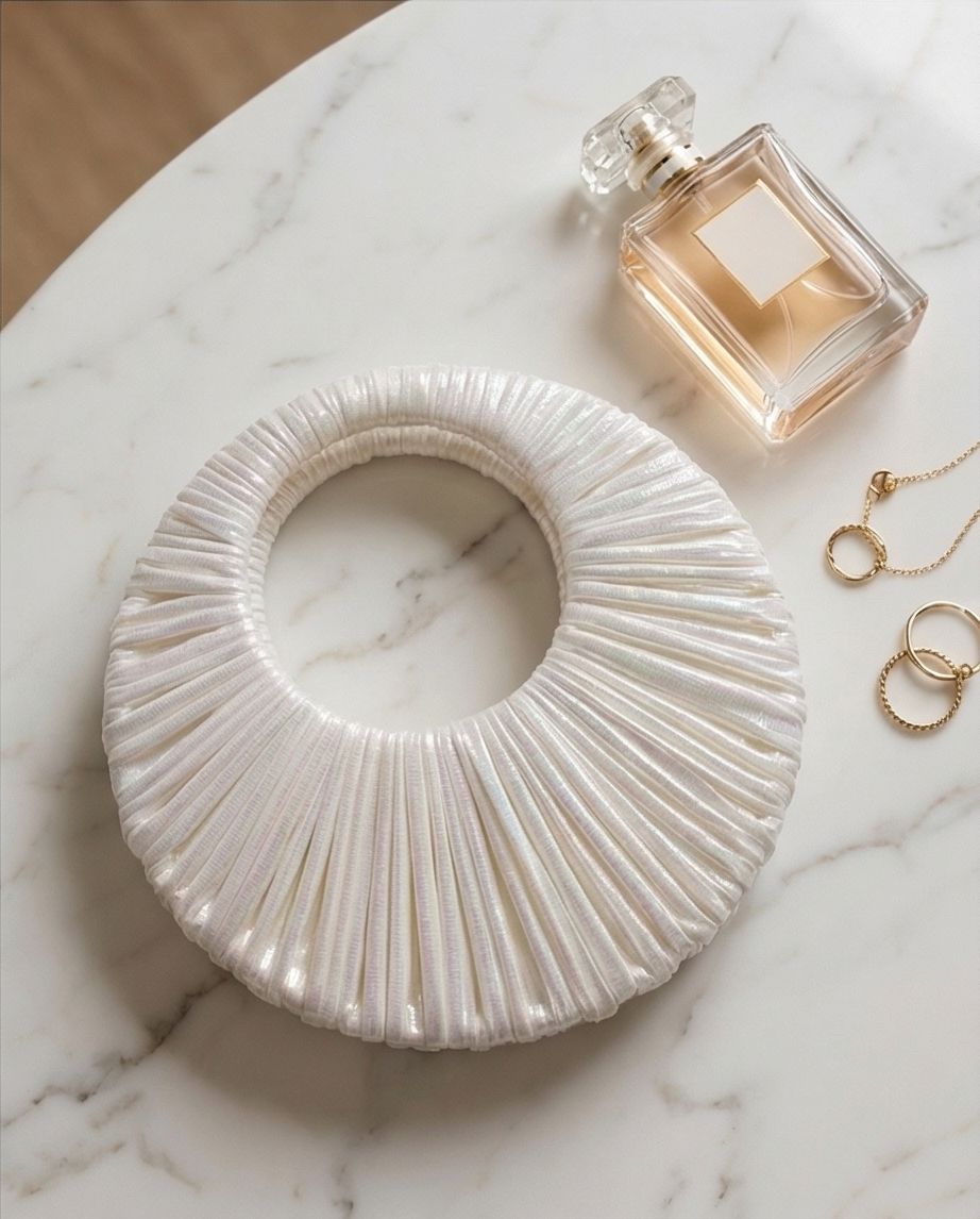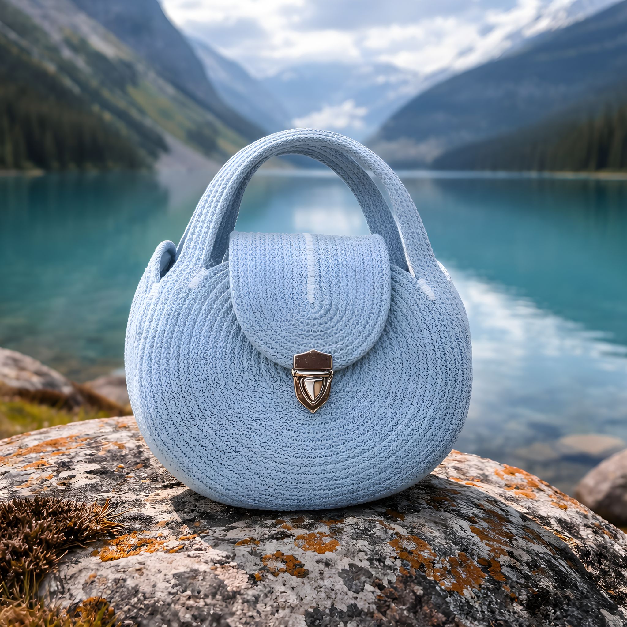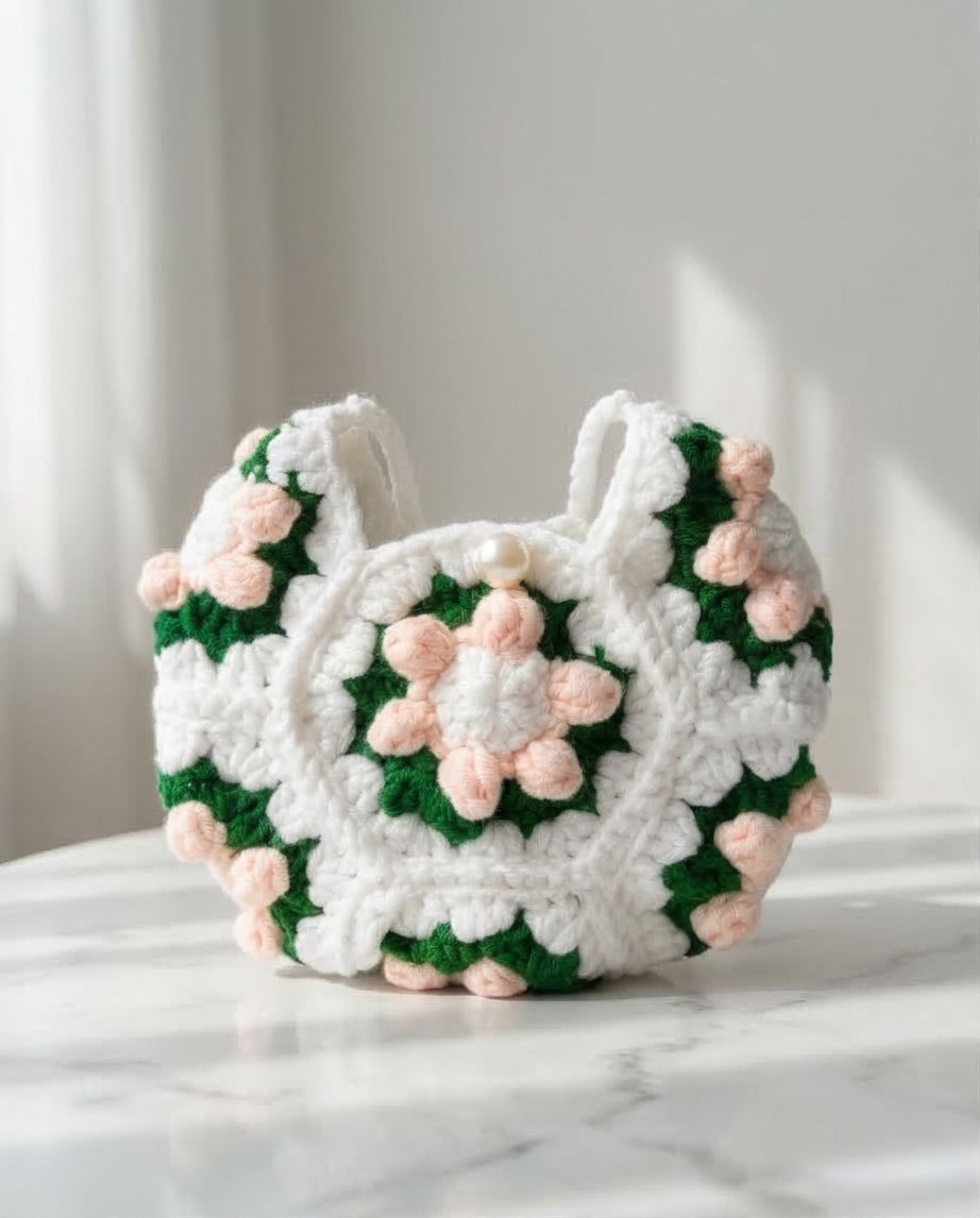 Borsa Handmade in Ciniglia Rosa con Manici Rigidi